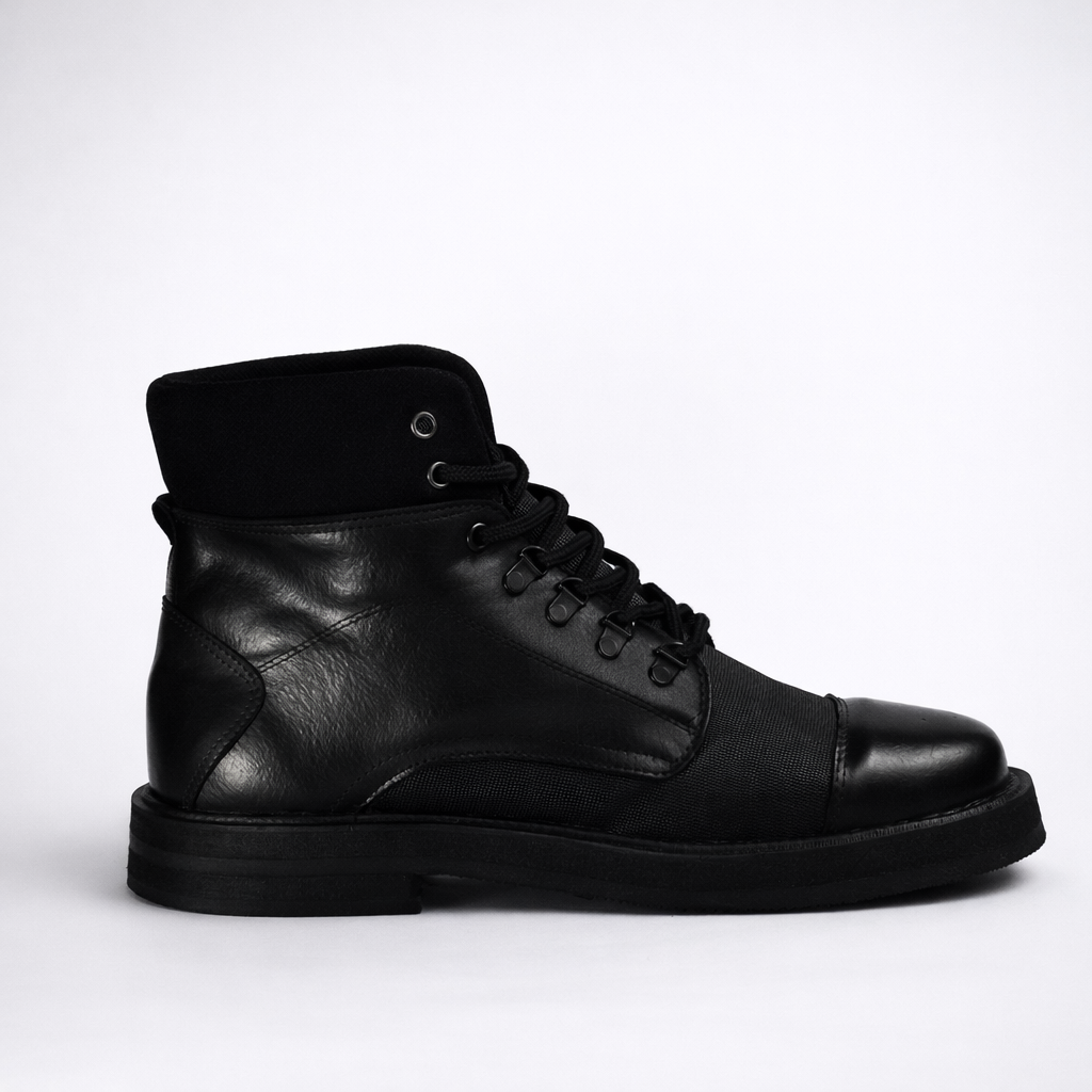 Lastre es una bota urbana de presencia firme, diseñada para quienes buscan resistencia, estilo y autenticidad en una sola pieza. Su capellada combina neumático recuperado con una trama de caucho de alto desempeño, aportando contraste, personalidad y una estética funcional profundamente conectada con la calle. La suela, elaborada en molido de llanta, ofrece tracción, durabilidad y una base sólida para el uso diario.