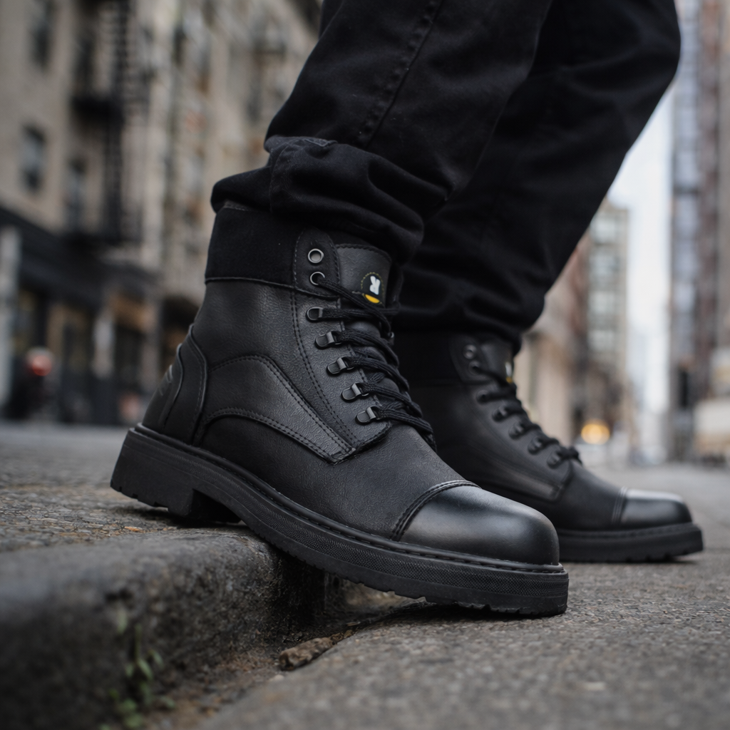 Parte de la colección La Calle Decide, Lastre transforma materiales de alto desgaste en una silueta robusta, versátil y contemporánea. Es una bota hecha para caminar con seguridad, vestir con intención y llevar la ciudad contigo en cada paso.